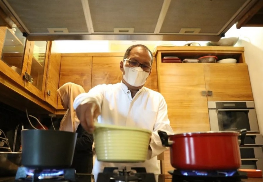 Memasak pisang,jagung dan umbi-umbian di lakukan langsung Wali Kota Makassar ini di dapur rumahnya sembari mengenang masa kecilnya menikmati sajian rebusan.