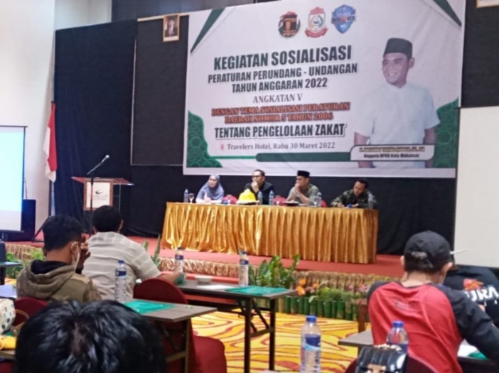 BN Online, Makassar—Anggota Komisi A DPRD Kota Makassar, Rahmat Taqwa Quraisy (RTQ) menggelar sosialisasi peraturan daerah (Sosperda) nomor 5 tahun 2006 tentang pengelolaan zakat, angkatan V.