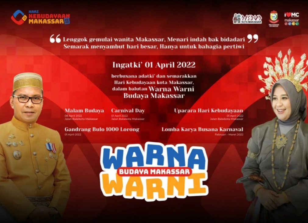 BN Online, Makassar—Pemerintah Kota Makassar menetapkan 1 April sebagai hari kebudayaan. Peringatan yang rutin di gelar sejak tahun 2018 ini akan kembali di meriahkan esok hari tepat 1 April 2022 yang berarti sudah 4 tahun menjadi agenda rutin.