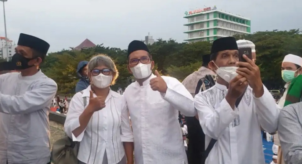 Hal tersebutlah yang nampak saat Pemerintah Kota Makassar menggelar shalat subuh berjamaah di Anjungan Pantai Losari Makassar, Minggu (17/4/2022).