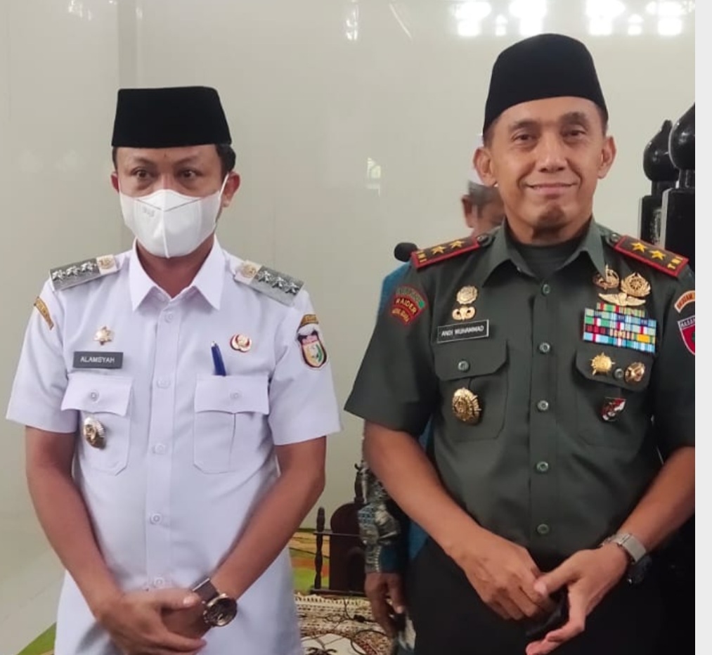 BN Online, Makassar—Camat Tallo, Alamsyah Sahabuddin S STP MSi, bersama Kapolsek Tallo dan Danramil 1408-02 Tallo medampingi Panglima Komando Daerah Militer (Pangdam) XIV Hasanuddin Mayor Jenderal Andi Muhammad SH dalam kunjungan safari ramadhan di Masjid Jami Kelurahan Rappokalling, Kecamatan Tallo, Rabu (20/4/2022).