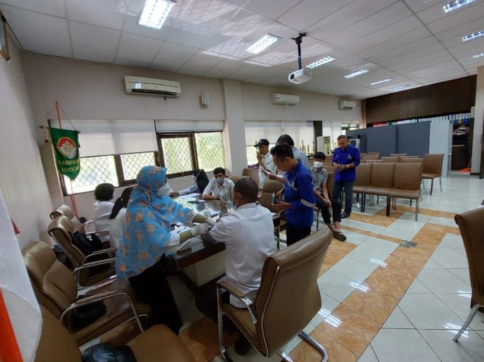 Lanjutnya, proses kegiatan vaksinasi booster berjalan dengan lancar dimana para petugas kesehatan melakukan screening awal kepada seluruh pegawai sebelum melakukan vaksinasi booster.