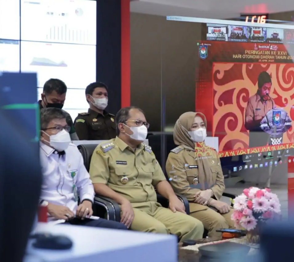 BN Online, Makassar—Wali Kota Makassar Moh. Ramdhan “Danny” Pomanto bersama Wakilnya, Fatmawati Rusdi mengikuti Peringatan Hari Otonomi Daerah ke – XXVI yang digelar Kementrian Dalam Negeri (Kemendagri) secara virtual dari War Room lantai 10 Menara Kantor Balaikota. Senin (25/4/2022).