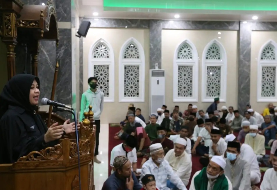 Di hadapan jamaah, Fatma tak lupa mengingatkan agar tetap taat melakukan protokol kesehatan agar secepatnya kondisi normal bisa di terapkan kembali.