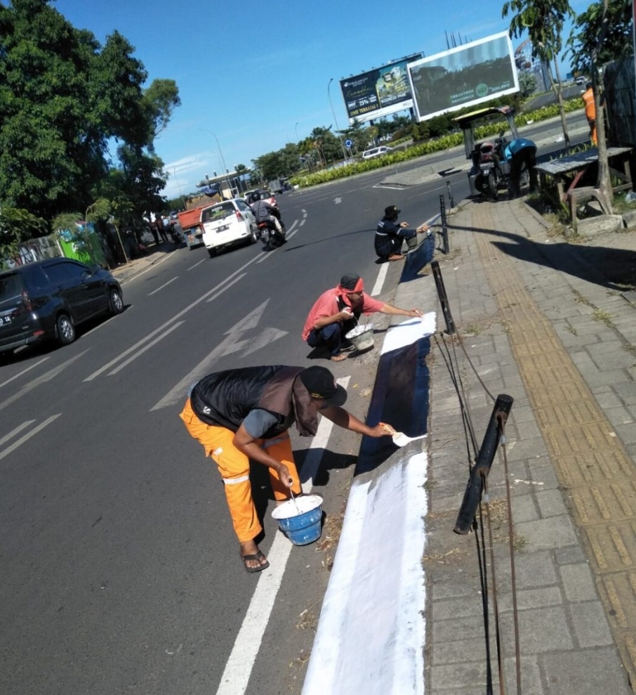 Pelaksanaan pekerjaan ini guna untuk menjaga estetika kota terkhusus trotoar jalan, pengecatan trotoar dilakukan oleh 13 orang satgas jalan dinas PU Kota Makassar.
