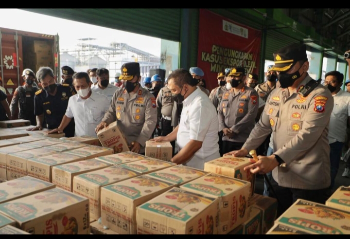 Kabareskrim Polri Komjen Agus Andrianto mengungkapkan, delapan kontainer tersebut berisikan 162.642,6 liter atau 121,985 ton minyak goreng siap ekspor. Hal ini bertentangan dengan kebijakan Pemerintah soal larangan ekspor minyak goreng, demi memenuhi kebutuhan dalam negeri.