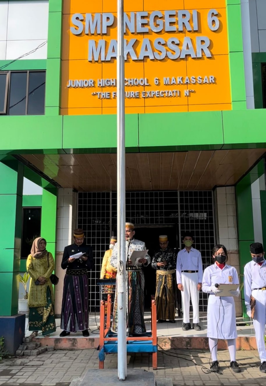 UPT SPF SMP Negeri 6 yang berlokasi di Jl. Ahmad Yani Kecamatan. Ujung Pandang, Kota Makassar memperingati dan melaksanakan upacara peringatan Hardiknas 2022 yang berlangsung, di halaman sekolah, Jum’at (13/05/2022).