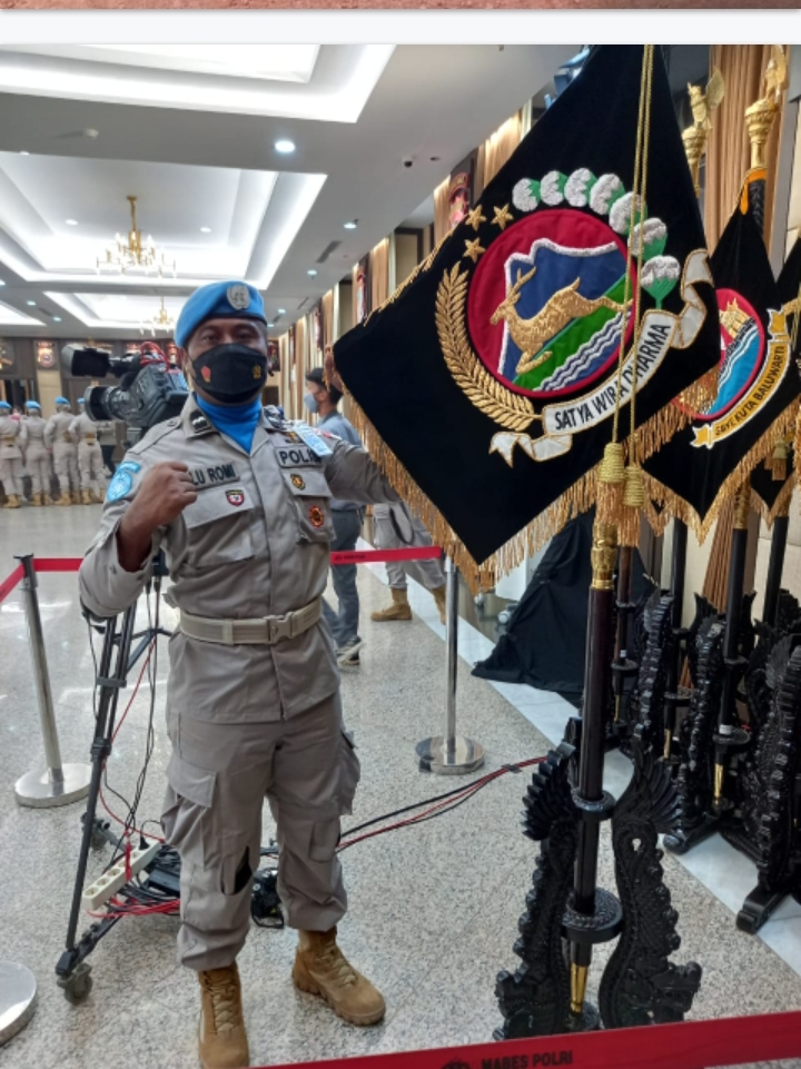 Aipda Lalu Romi H. Anggota Sat Brimobda NTB Putra NTB bertugas sebagai Pasukan Perdamaian di Afrika Tengah.
