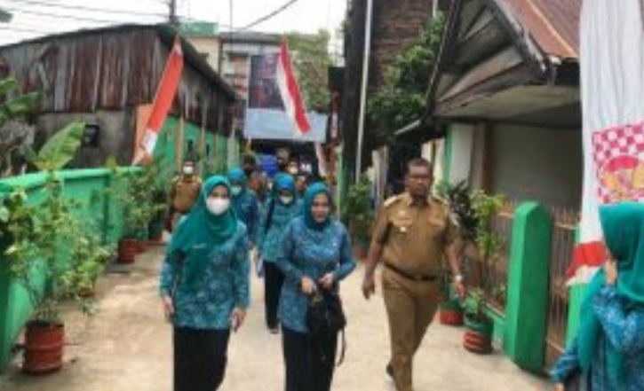 BN Online, Makassar—Ketua Tim Penggerak Pembinaan Kesejahteraan Keluarga ( TP PKK) Kecamatan Tallo, Tia Hardini Eka Pranasari ST, didampingi TP PKK se Kecamatan Tallo menerima kunjungan tim penilai dari Pokja 2 TP PKK Kota Makassar bertempat di Jalan Teuku Umar Lorong 1 Kelurahan Suangga, Kecamatan Tallo, Kota Makassar, Selasa (24/5/2022).