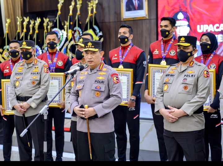 JAKARTA – Kapolri Jenderal Listyo Sigit Prabowo memberikan penghargaan sebagai bentuk apresiasi kepada personel Polri sebagai atlet yang telah menyumbangkan medali emas, perak dan perunggu untuk Indonesia dalam perhelatan Sea Games Vietnam.