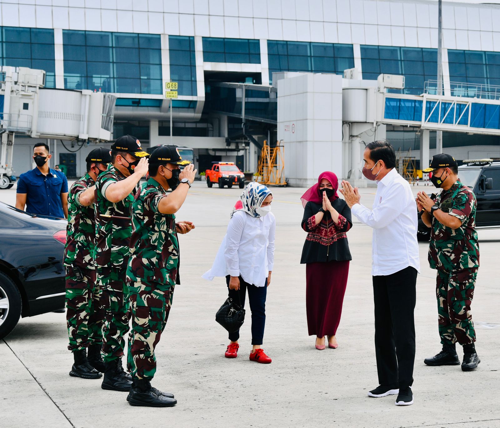 Turut mendampingi Presiden dan Ibu Iriana dalam penerbangan menuju Provinsi NTT adalah Sekretaris Kabinet Pramono Anung, Kepala Sekretariat Presiden Heru Budi Hartono, Sekretaris Militer Presiden Marsda TNI M. Tonny Harjono, Komandan Paspampres Mayjen TNI Tri Budi Utomo, serta Deputi Bidang Protokol, Pers, dan Media Sekretariat Presiden Bey Machmudin.