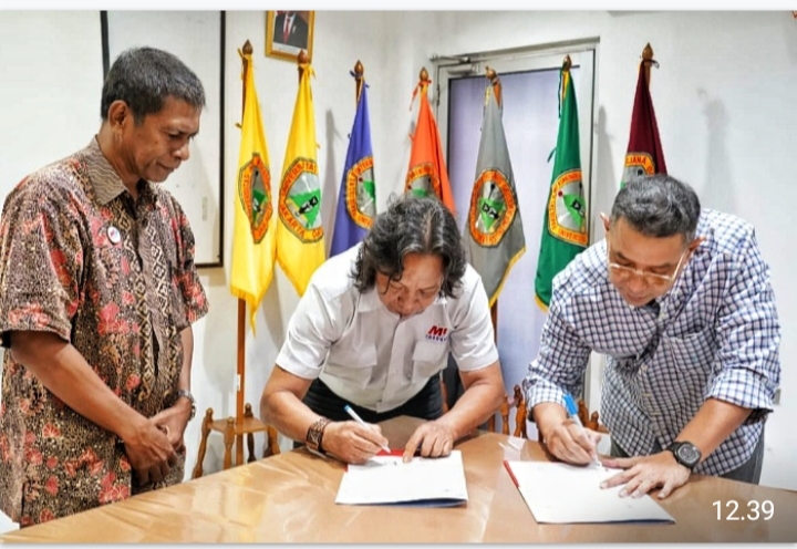MOU antara Universitas Moestopo dan MIO Indonesia ditandatangani oleh Ketua Umum MIO Indonesia AYS Prayogie dan disaksikan oleh Sekjend MIO Indonesia Frans Watu.
