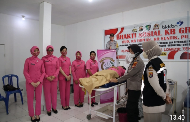 Kapolres Lombok Tengah AKBP Hery Indra Cahyono, SH, SIK, MH melalui Kasi Dokes Polres Lombok Tengah Pendatu dr. Weni Santiwi menjelaskan bahwa Bhakti kesehatan dalam rangka menyambut Hari Bhayangkara ke-76 satu Juli 2022 kali ini, Polres Loteng memberikan pelayanan KB gratis untuk anggota Bhayangkari (para istri personel Polres Lombok Tengah) beserta Masyarakat umum.