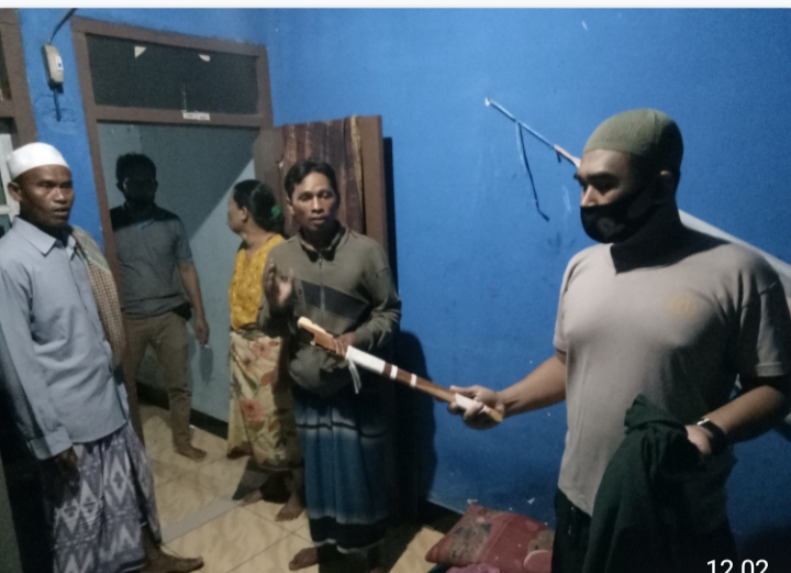 “Polisi telah mengamankan Barang Bukti berupa satu buah gagang senjata tajam, satu buah sarung senjata tajam dengan panjang 35 cm, kain sarung milik pelaku” ungkap Kapolsek.