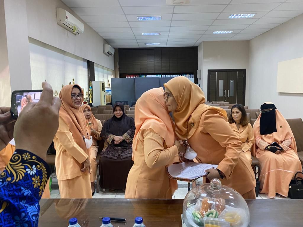 BN Online, Makassar—Pengurus Dharma Wanita Persatuan Dinas Pekerjaan Umum Kota Makassar melakukan kegiatan serah terima jabatan dari pengurus yang lama kepada pengurus yang baru, berlangsung di ruang rapat lantai 2 Kantor Dinas Pekerjaan Umum Kota Makassar, Jumat 17 Juni 2022.