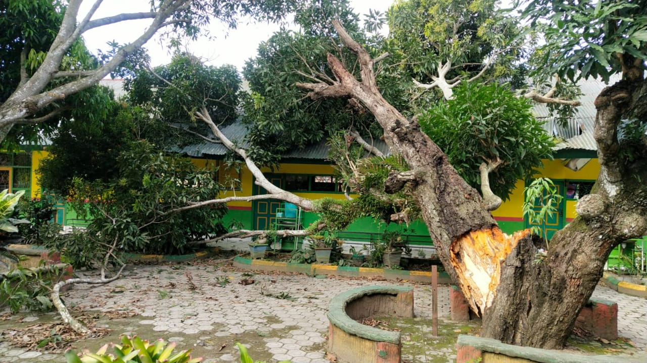 Sampai saat ini,pohon yang tumbang sudah dievakuasi guru yang dibantu warga dengan menggunakan peralatan seadanya namun ruangan itu untuk sementara tidak bisa difungsikan melakukan proses belajar mengajar karena dikhawatirkan bagian atap ruangan akan roboh.