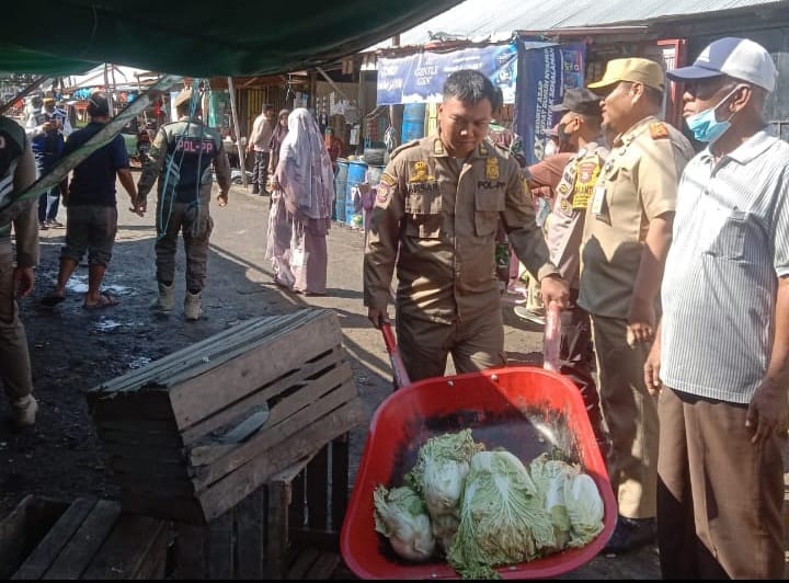 BN Online Sidrap—Pemerintah Kelurahan Pangkajene kecamatan Maritengngae bersama personil Satpol PP dan Dinas Perhubungan yg di back up petugas dari Polsek MaritengngaE melakukan penertiban lapak warga yang dilaporkan warga setempat terkait penggunaan jalanan umum sebagai sarana tempat untuk berjual beli yang dianggap meresahkan warga dan pengguna jalan umum.Selasa,21/06/2022