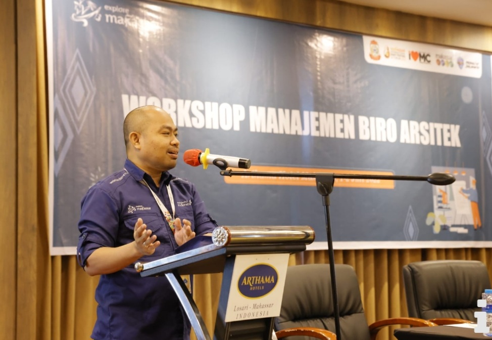 BN Online, Makassar—Kepala Dinas Pariwisata Kota Makassar Muhammad Roem membuka Workshop Management Biro Arsitektur yang bertempat di Hotel Arthama Makassar, Hari Jum’at (1/7/2022).