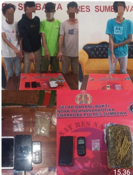 BNMG Online _ Sumbawa Besar-NTB, Tim Opsnal Sat Resnarkoba Polres Sumbawa Polda NTB berhasil mengamankan 5 orang pria karena memiliki, menguasai dan menyimpan narkoba jenis ganja.