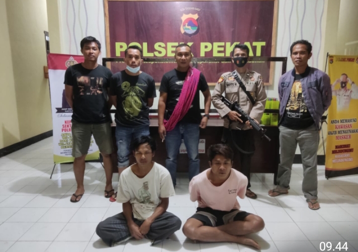 Berdasar pengakuan terduga pelaku tersebut kemudian anggota Opsnal Polsek Pekat melakukan pengembangan terhadap keterlibatan pelaku lainnya yakni KABUL BUDIYONO alias KABUL sehingga anggota Opsnal Polsek Pekat langsung melakukan penangkapan terhadap KABUL BUDIYONO alias KABUL yang saat itu sedang berada dirumahnya, terang Kapolsek.