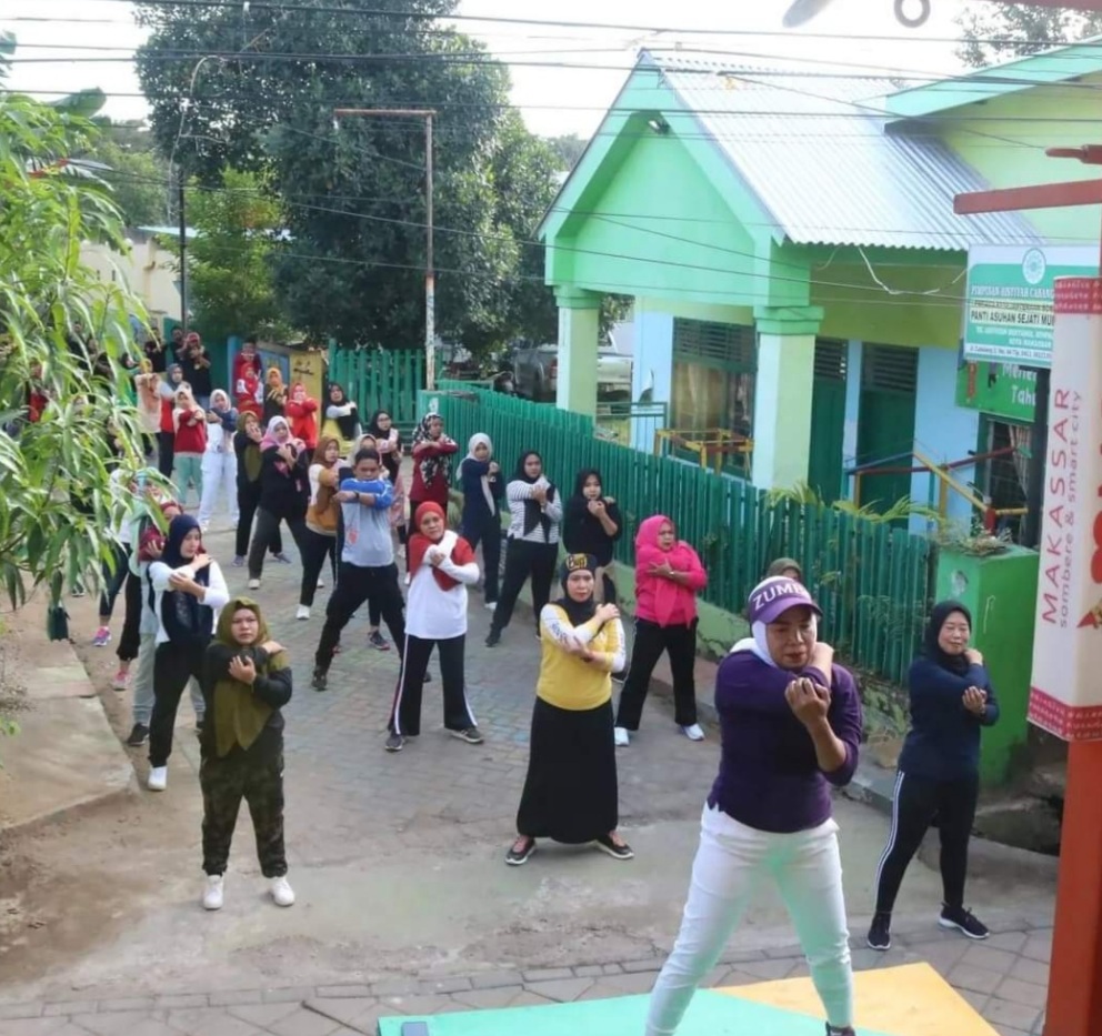 BN Online, Makassar—Menjaga kebugaran tubuh agar tetap sehat, Camat Ujung Tanah, Ibrahim Chaedar Said, S IP, MSi, bersama Pj RT RW dan Warga menggelar senam pagi sehat bertempat di kelurahan Totaka Kecamatan Ujung Tanah, Senin (25/07/2022).