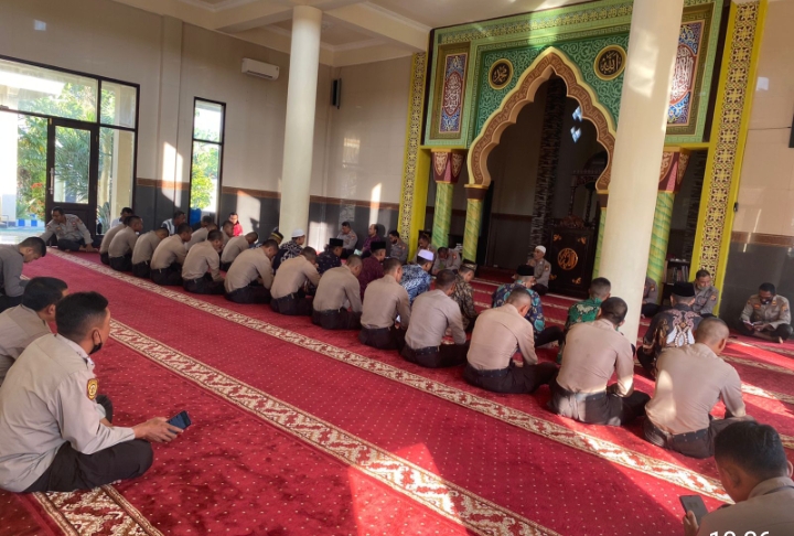Bidik Nasional Online _ Tingkatkan keimanan dan ketaqwan personil Polri kepada allah SWT, Kepolisian Daerah Nusa Tenggara Barat dalam hal ini Polres Dompu melaksanakan giat Binrohtal rutin setiap hari jumat setelah Apel pagi. Pembinaan rohani dan mental (Binrohtal) sebagai wadah unuk membentuk karakter Anggota Polri menjadi lebih humanis, sehingga Citra Kepolisian di mata masyarakat di pandang lebih baik. Jumat (29/07/22) pukul 08.30 wita.