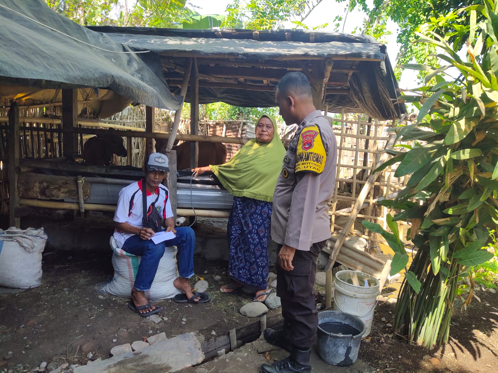 bidik Nasional Media Group _ Sumbawa Besar-NTB,Dalam mengantisipasi penyebaran penyakit mulut dan kuku pada hewan ternak serta penanganan dengan cepat sehingga tidak sampai menular pada hewan ternak yang lain, Bhabinkamtibmas Polsek Utan rutin lakukan pengawasan dan monitoring di wilayah binaan masing-masing.