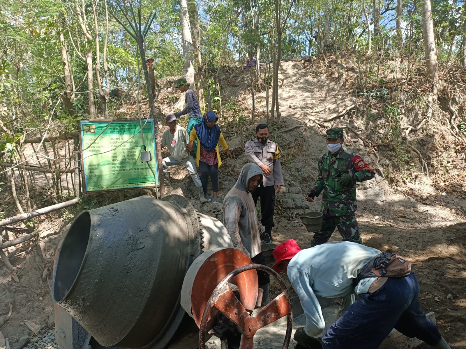 Bhabinkamtibmas Kalimantong Lakukan Gotong Royong Pengecoran Penampungan Air Pamsimas