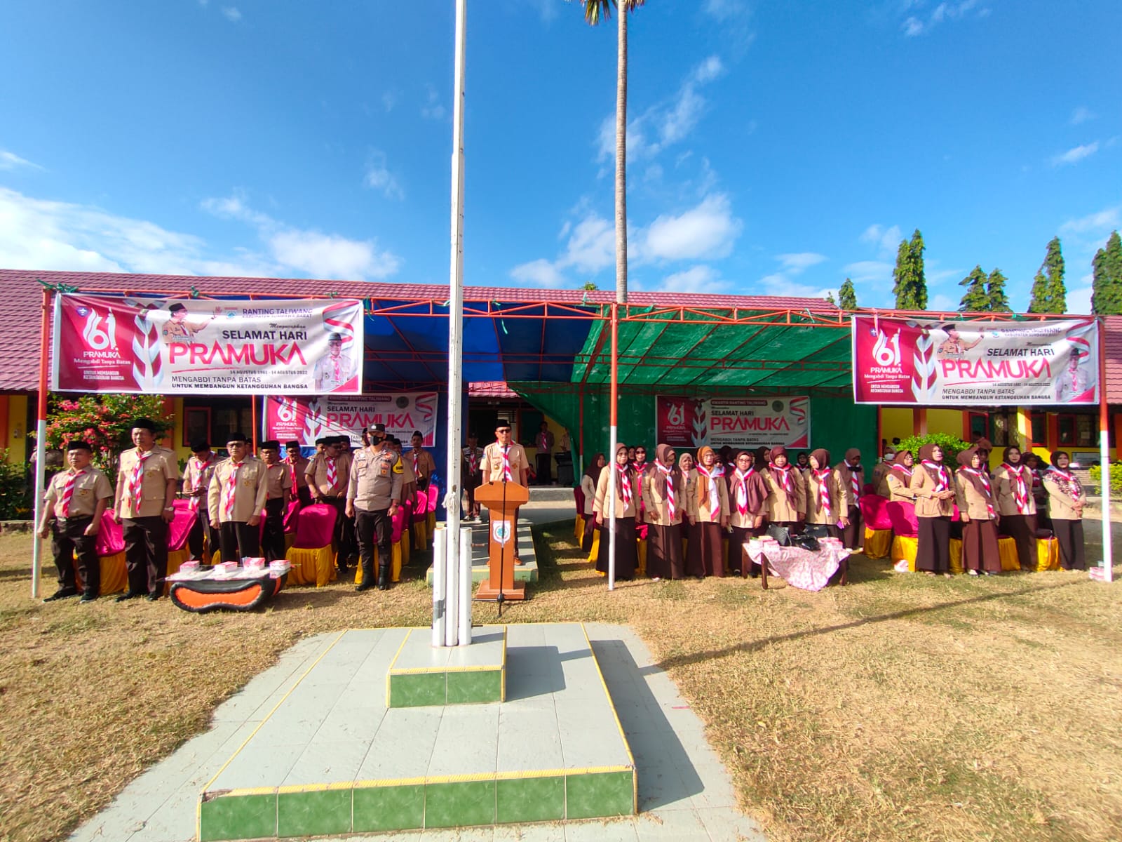 Bidik Nasional _ Sumbawa Barat – Bhabinkamtibmas Kelurahan Bugis Kecamatan Taliwang Bripka Eka Sindo Saputra anggota Polsek Taliwang mengikuti upacara memperingati HUT Pramuka ke-61 tahun 2022.