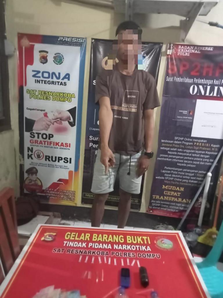 Bidik Nasional _ Seperti halnnya tadi malam Jumat (19/08/22) pukul 18.30 wita Tim Opsnal Satuan Resnarkoba Polres Dompu melakukan penangkapan terhadap seseorang yang diduga memiliki, menyimpan, menguasai dan menjual Narkotika Golongan I Bukan Tanaman Jenis SHABU.