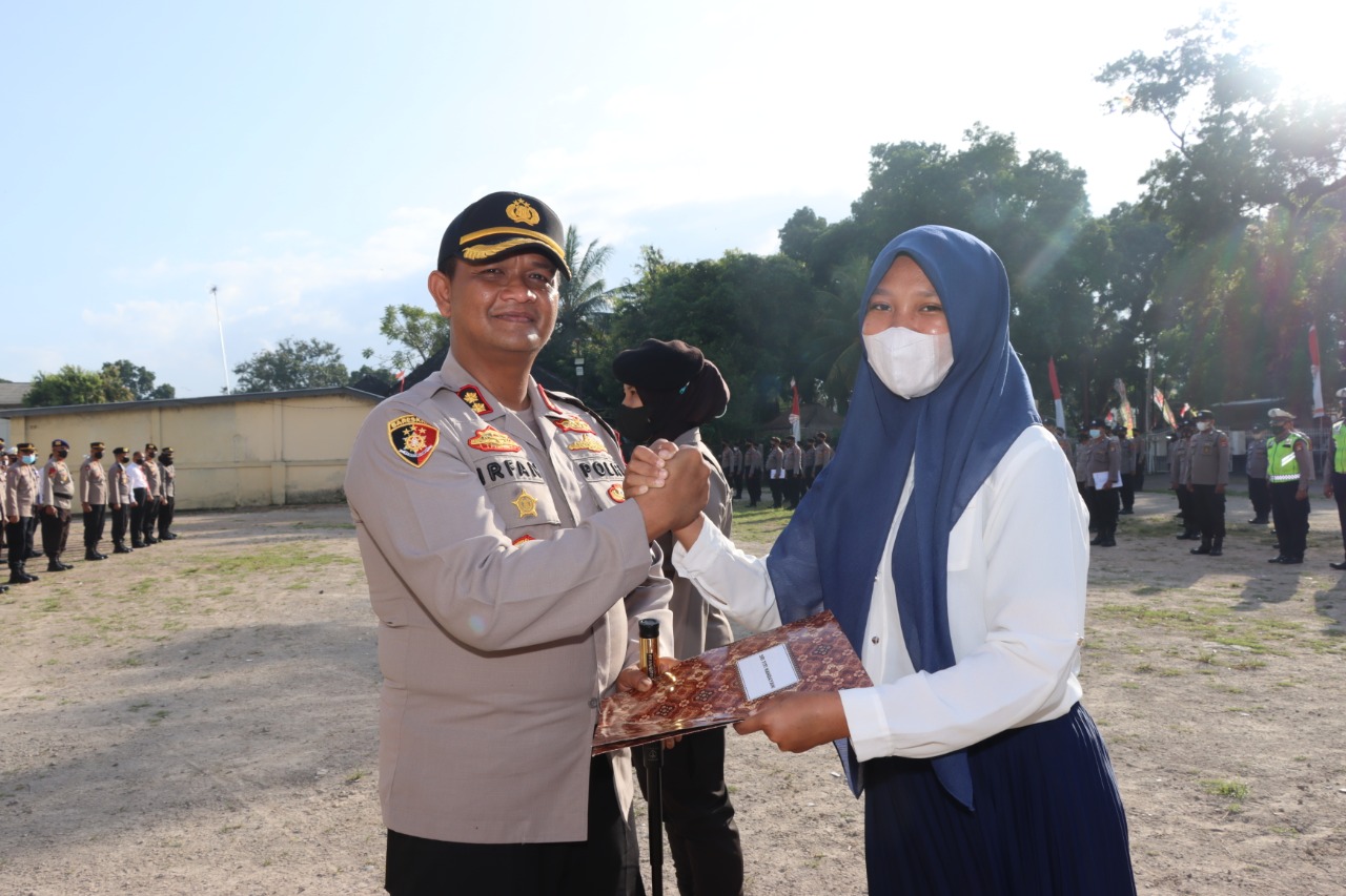 Bidik Nasional _ LOMBOK TENGAH, (NTB) – Sri Titi Handayani seorang gadis (19) warga Desa Batujai, Kecamatan Praya Barat mendapat penghargaan dari Polres Lombok Tengah karena keberaniannya melawan jambret.