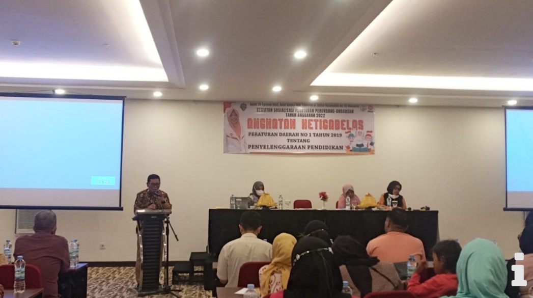 BN Online, Makassar – Anggota DPRD Kota Makassar, Yeni Rahman menggelar sosialisasi peraturan daerah (sosperda) nomor 1 tahun 2019 terkait penyelenggaraan pendidikan di Hotel Golden Tulip Makassar, Senin (29/8/2022).