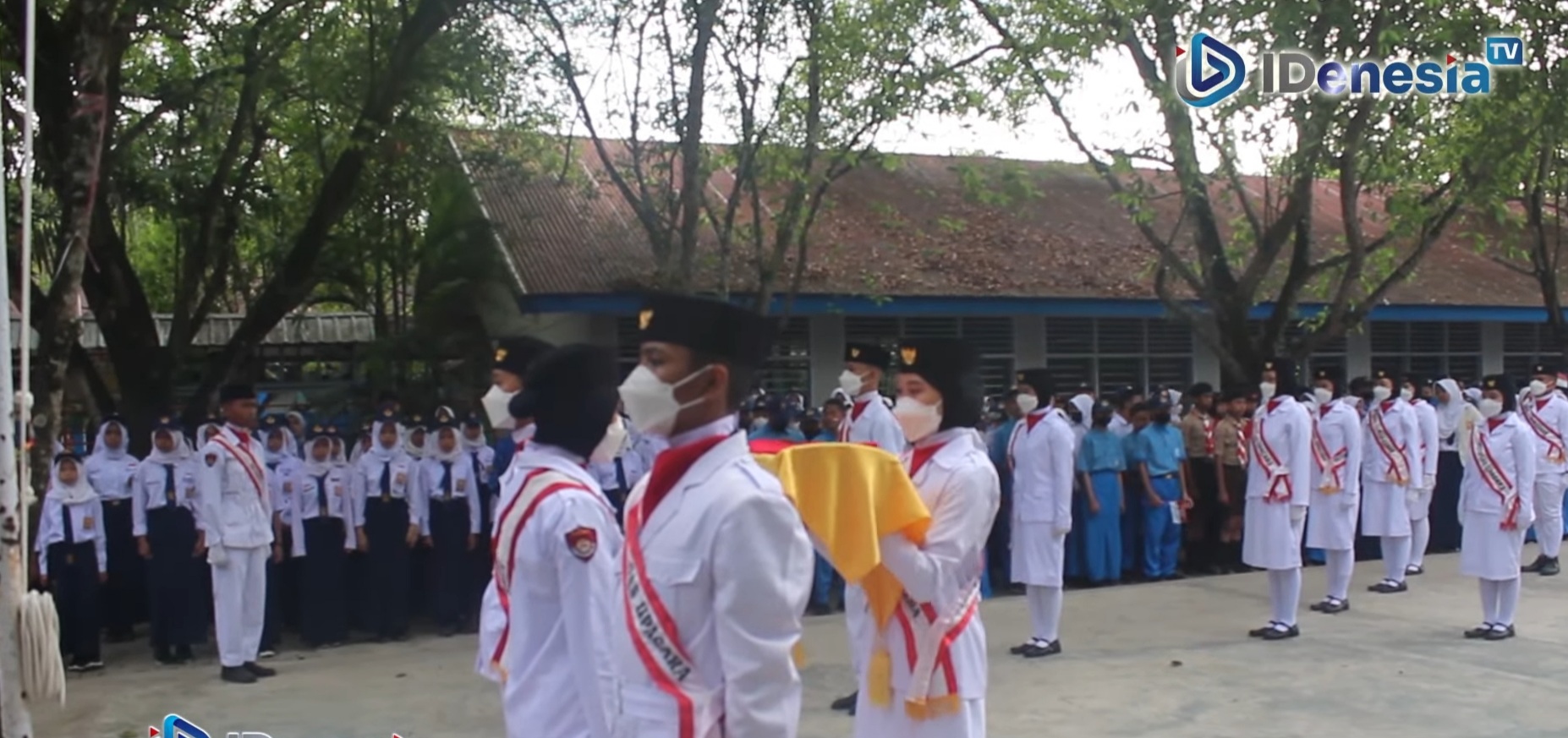 Dengan petugas upacara dan Pasukan Pengibar Bendera (Paskibra) siswa siswi yang mendapatkan tugas sebagai pembawa baki yang membawa bendera merah puitih.