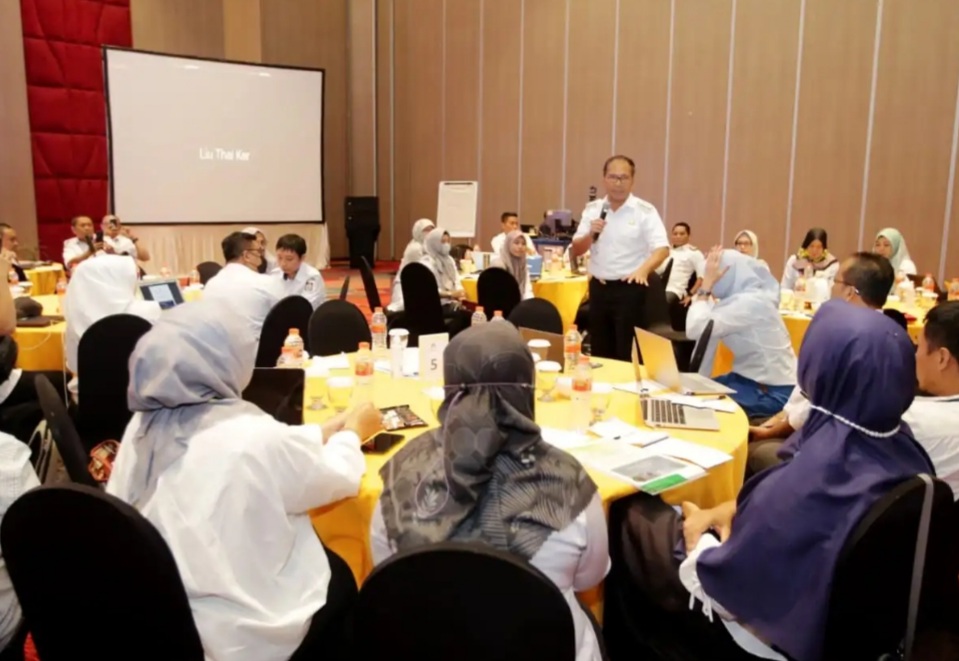 Danny terlihat begitu bersemangat menyimak penjelasan Dr Liu Thair Ker seorang Morrow Architects and Planners yang telah berhasil membangun Kota Singapura yang hadir sebagai narasumber dalam forum Sustainable Smart City Programme in Indonesia di Hotel Gammara Makassar, Rabu (14/09).