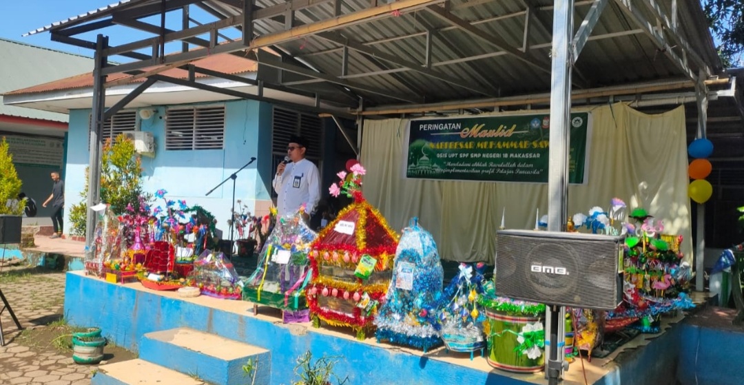 BN Online, Makassar-–UPT SPF SMP Negeri 18 yang berlokasi di Jl. DG. Tata Kompleks Hartaco Indah, Kecamatan Tamalate Kota Makassar, melaksanakan kegiatan Maulid Nabi Muhammad SAW, Jumat (14/10/2022).