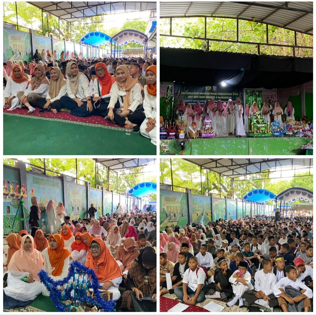 Pada hari Rabu 26 Oktober 2022, UPT SPF SMP Negeri 2 Makassar, turut merayakan kelahiran nabi besar Muhammad SAW di masjid Darut Tholibin dengan tema: “Memetik Keteladanan Rasulullah Untuk Karakter Generasi Islami”.