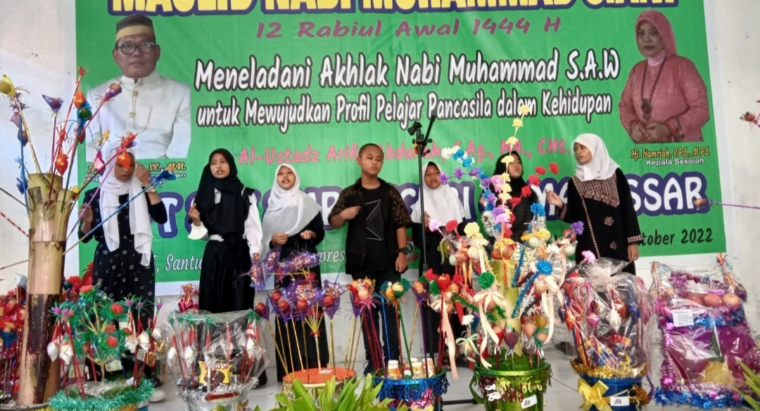 BN Online, Makassar—UPT SPF SMP Negeri 45 yang berlokasi di Jl. Timor Nomor 79 Kecamatan Wajo, Kota Makassar merayakan Maulid Nabi Besar Muhammad SAW dengan semangat islamisasi pada Kamis (13/10/2022).