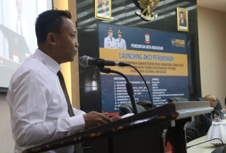 BN Online, Makassar—Camat Tallo, Alamsyah Sahabuddin, S. STP, MSi mengikuti Launching Proyek Aksi Administrasi TK III Angkatan II tahun 2022 yang digelar di Gedung Sipakatau Balaikota Makassar, 19/08/2022.