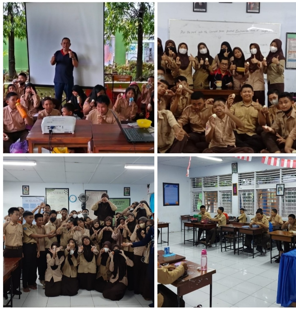 Kami arahkan anak anak untuk membawa makanan bergizi dari rumah, dan serentak ada 33 kelas yang makan telur rebus disekolah.