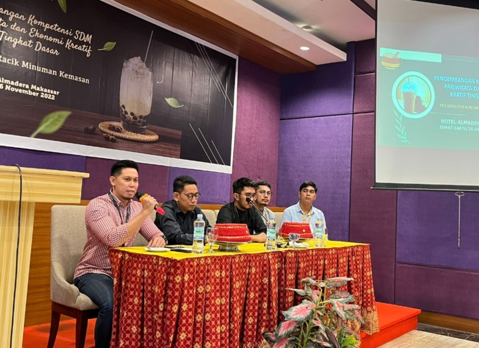 Pelaksanaan Kegiatan Pengembangan Kompetensi Sumber Daya Manusia Pariwisata dan Ekonomi Kreatif Tingkat Dasar (Pelatihan Racik Minuman Kemasan) ini merupakan langkah kongkret Pemerintah Kota Makassar melalui Dinas Pariwisata Kota Makassar dalam mendukung Program 10.000 skill training gratis kepada masyarakat Kota Makassar.