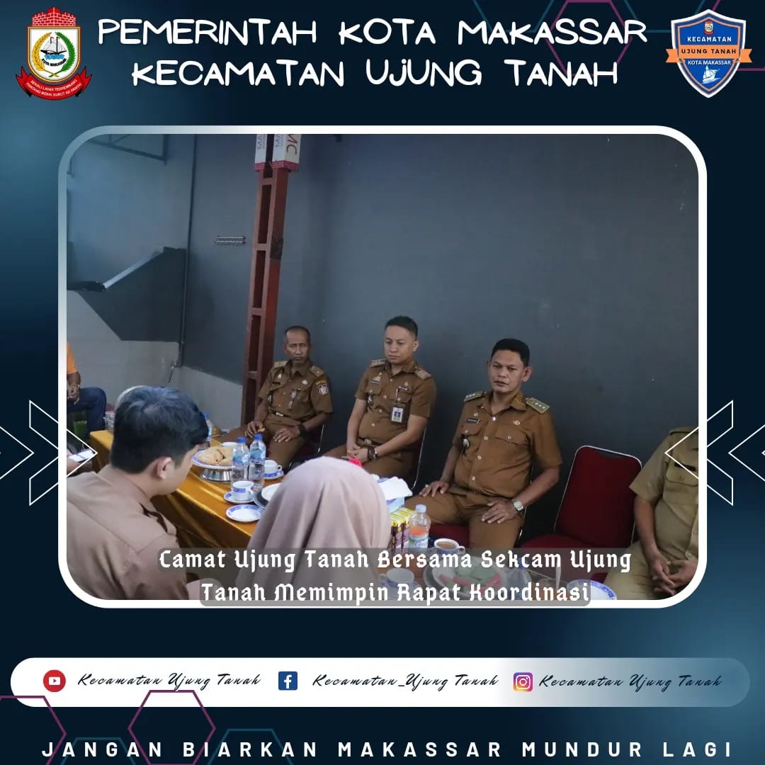 Dalam Rapat Koordinasi ini dihadiri Kasi Kecamatan Ujung Tanah Lurah Se-Kecamatan Ujung Tanah. Tripika dan Tokoh Masyarakat Kelurahan Ujung Tanah.