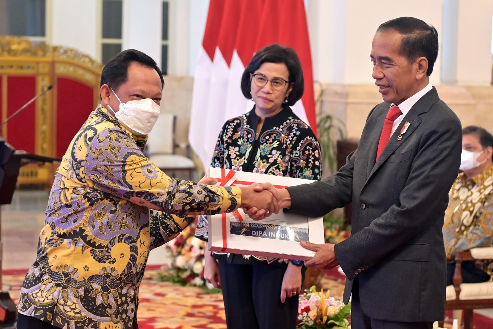 “Untuk itu, dengan segala hormat kami mohon kesediaan Bapak Presiden untuk dapat menyerahkan DIPA secara simbolis kepada 14 menteri dan pimpinan lembaga dan daftar alokasi TKDD untuk tahun 2023 kepada para gubernur,” ujar Menteri Keuangan (Menkeu) Sri Mulyani.