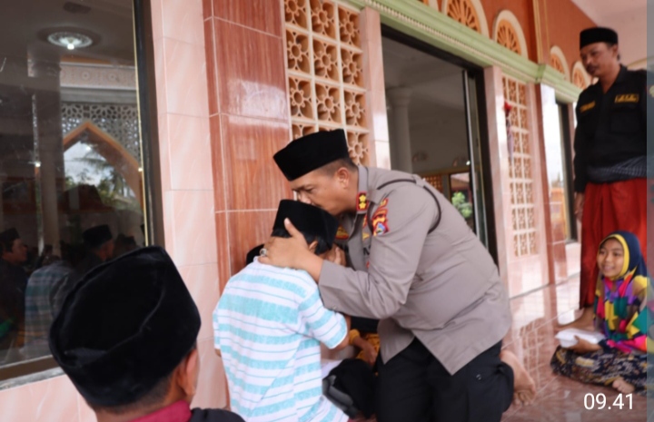 Usai kegiatan tatap muka, Kapolres Lombok Tengah memberikan bantuan sarana kontak kepada pengurus masjid ILMULYAQIN sekaligus menyalurkan bantuan kepada anak yatim dan warga kurang mampu.