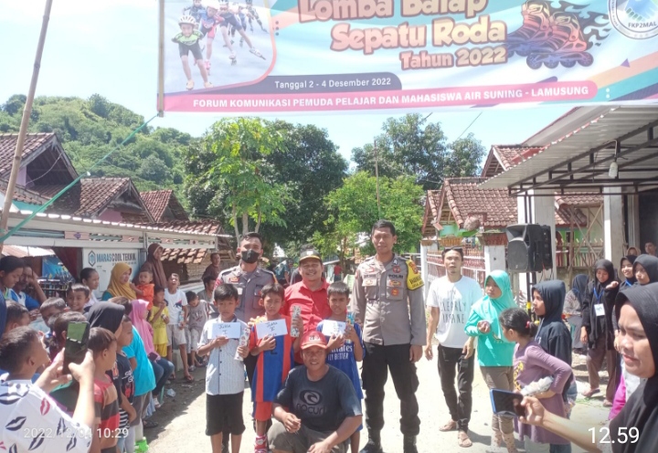 Amankan Lomba Balap Sepatu Roda, Bhabinkamtibmas Air Suning Lakukan Ini