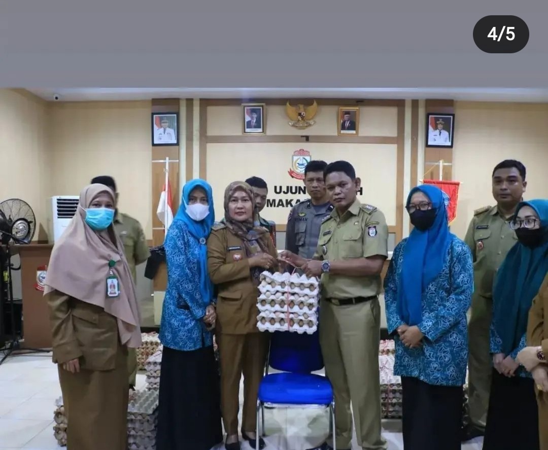 BN Online, Makassar—Camat Ujung Tanah Ibrahim Chaidar Said, S.Ip, M.Si bersama pengurus TP PKK Kecamatan Ujung Tanah, melakukan penyerahan telur ayam kampung dari Dinas Pemberdayaan Perempuan dan Perlindungan Anak (DP3A) Provinsi Sulsel, Selasa (6/12/2022).