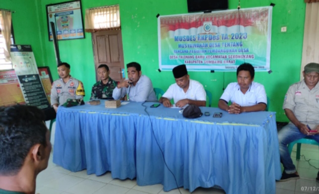 Bidik Nasional Media Group _ Sumbawa Barat – Untuk memberikan keamanan dan kenyamanan kepada masyarakat, bhabinkamtibmas Desa Talonang Kecamatan Sekongkang Briptu M. Megi Zulkarnain anggota Polsek Sekongkang menghadiri giat musyawarah desa (Musdes) dalam rangka penyusunan rencana kerja pemerintah desa Talonang (RKPDes) tahun anggaran tahun 2023.