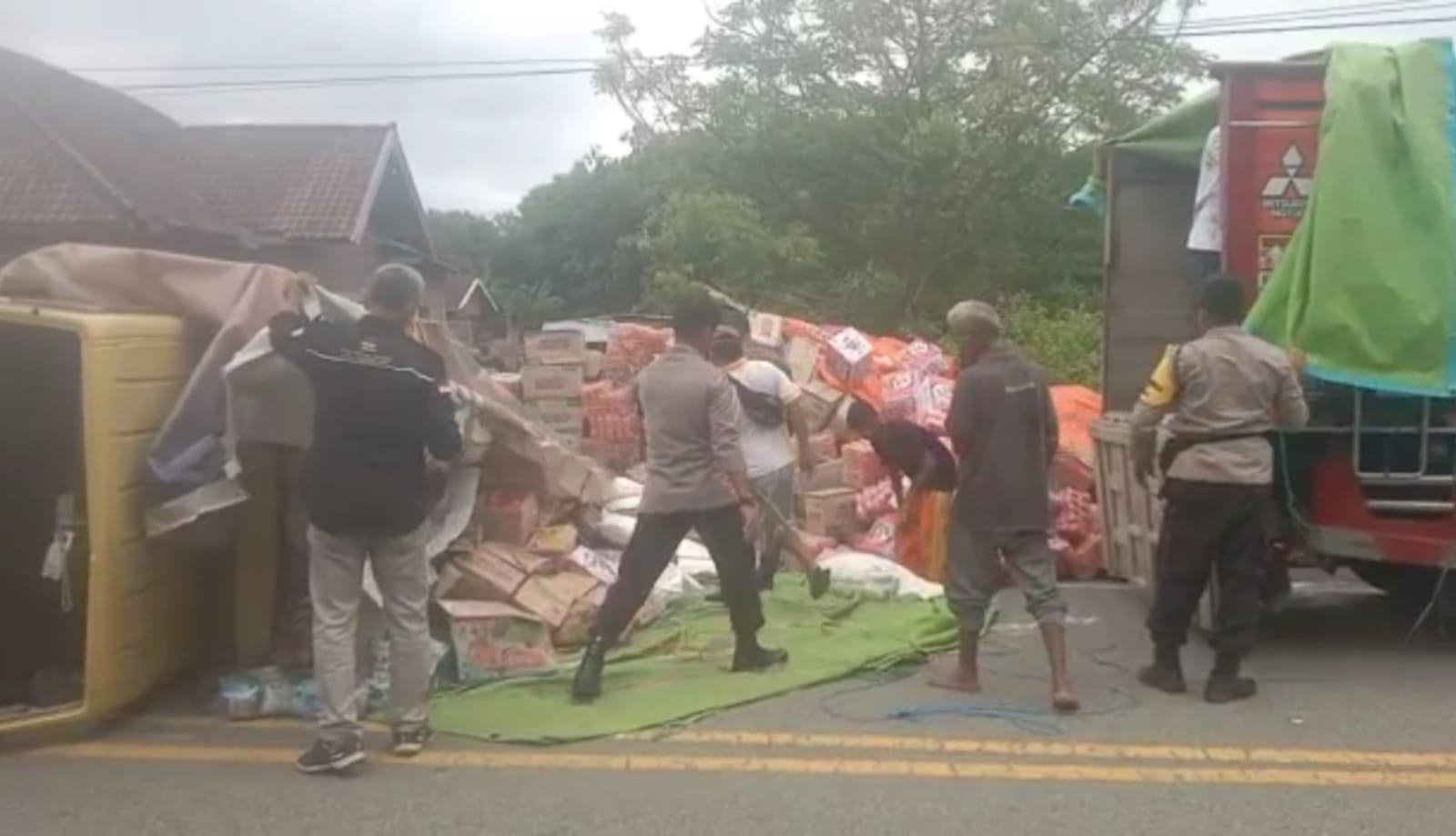 Kapolsek bersama personel yang menerima laporan dari masyarakat terkait kecelakaan tersebut kemudian menuju lokasi untuk mengamankan lokasi, melakukan pengaturan arus lalu lintas dan juga membantu melakukan evakuasi truk.