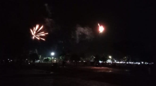 Bidik Nasional.id _ Pengunjung memadati Bencingah, Alun – alun Tastura Kota Praya ikut meriahkan pergantian tahun dengan pesta kembang api