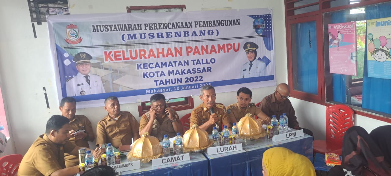 “Bappeda Kota Makassar sebagai Narasumber Dinas PU, Dinas Perhubungan, Dinas Pendidikan, Dinas Pariwisata, Kepala Puskesmas, Kesbangpol, DP3A, Perusda Kota Makassar, Tokoh Masyarakat, Ketua LPM Kelurahan Pannampu dan RT/RW Kelurahan Pannampu,” kata Nimrod Sembe.