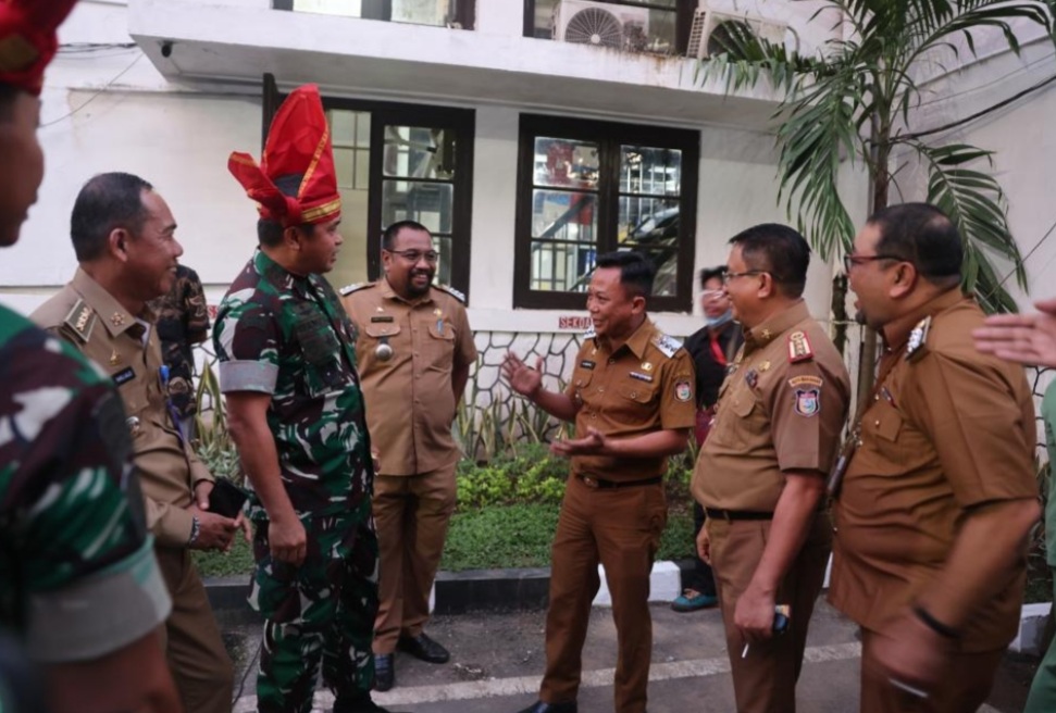 BN Online, Makassar—Camat Tallo Alamsyah Sahabuddin mendampingi Walikota Makassar Ir H. Moh Ramdhan Pomanto, sambut kunjungan Kepala Staf Angkatan Darat (KSAD), Jenrdral TNI dr Dudung Abdurachaman SE, MM dan Rombongan di Balai kota Makassar, Rabu (11/01/2023).